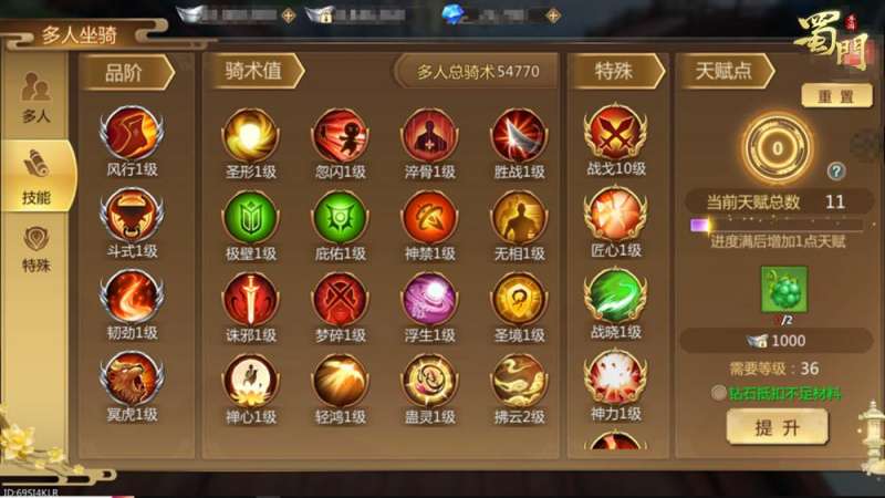 坐骑天赋在每一级之间的联系是非常紧密的,我们得先学上面的技能,才能学下面的高级技能,我们得先把低级技能点出来,比方说我们想要学习这个杀手技能,那我们就必须先学一级在杀手技能上面一级的这个隐攻术,下次才有概率会刷新出这个杀手,而且并不能通过重置来回到上一级的天赋来进行重新选择。当我们不小心点错了天赋之后,如果想要重置那么需要把所有已经激活的天赋全部重置。