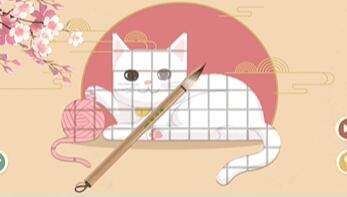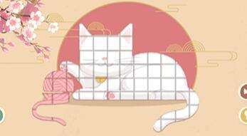 4、最后我们全部都拼完后,使用桃花下的毛笔给猫咪画上眼睛即可通关。