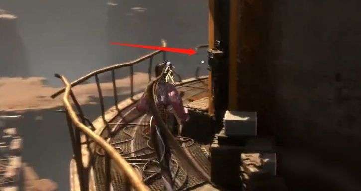 5、沿爬梯上去之后来到塔的后面,继续往上爬,第三层有个小机关要交互一下。