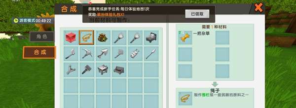 3、利用8个杂草可以制作4根绳子,利用4个岩石块,可以和绳子一起制作出工作台。