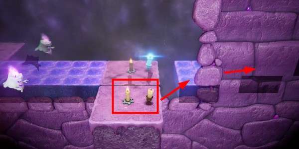4.跟着影像走到巨石上点燃蜡烛,这里会有蜡烛鬼,利用光照吓退他们,之后寻找下一个蜡烛。