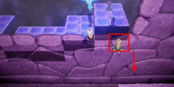 3.这里跟着倒影来到另一个蜡烛所在地并点燃,然后往左边走去,点燃里面的蜡烛后原路返回。
