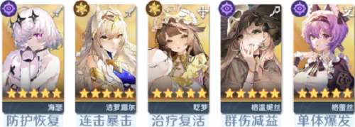 2、该阵容最核心的为格蕾丝作为输出,剩下四个英雄在这里都是起到一个辅助作用的,格蕾丝的单体爆发能力强悍,不过本身比较脆,很容易暴毙,但是又海瑟的护盾和呓梦的治疗能力就能够很好的保证格蕾丝的生存,本身爆发能力极强的情况下,再加上洁萝露尔的连击加成暴击加成,附加上格温妮斯的群伤减益,能够让格蕾丝的输出能力进行质量级的飞跃,很容易就能够一击对敌方单位带来致命一击。