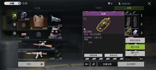 2、接着完成对局在仓库中能够找到铭牌,选择“提交任务”。