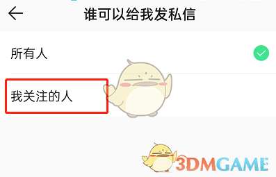 5、点击我关注的人。然后不关注任何人,就可以不收到任何人的私信了。