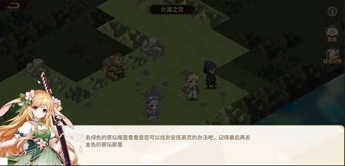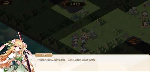5、往中间走,我们会看到红色的祭坛,这时小姐姐就提到了绿色,就能知道,绿色开了后,才能开红色,那么,我们就把红色打开。