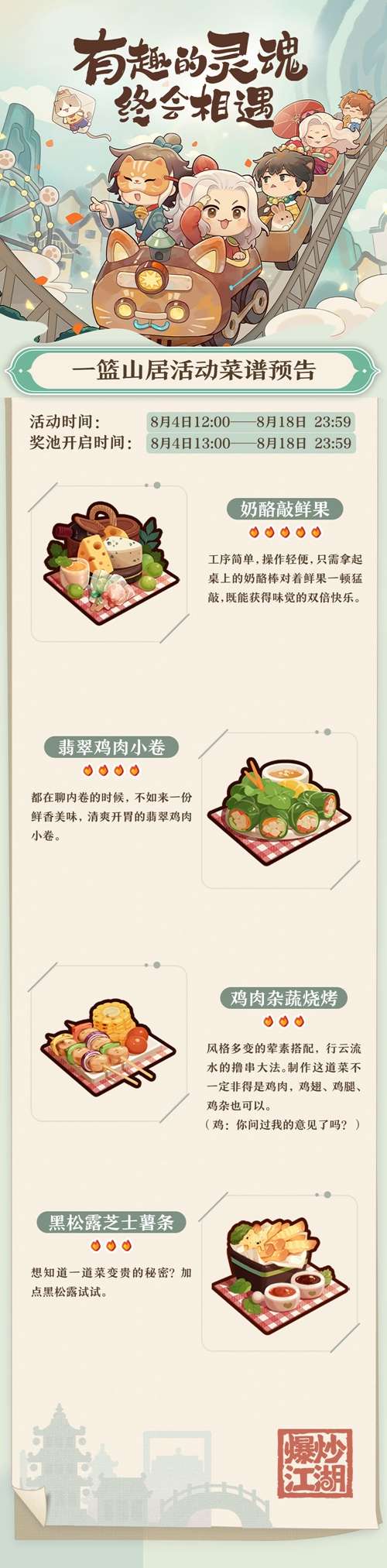 爆炒江湖活动菜谱预告 一篮山居活动菜谱一览