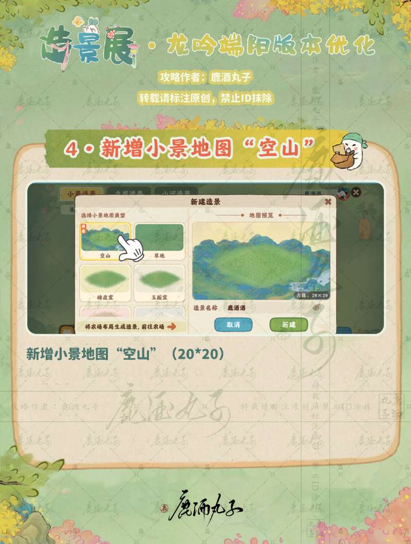 可以将农场内摆放的布局生成造景展作品草稿。【该功能暂时只支持小景和山河造景作品】