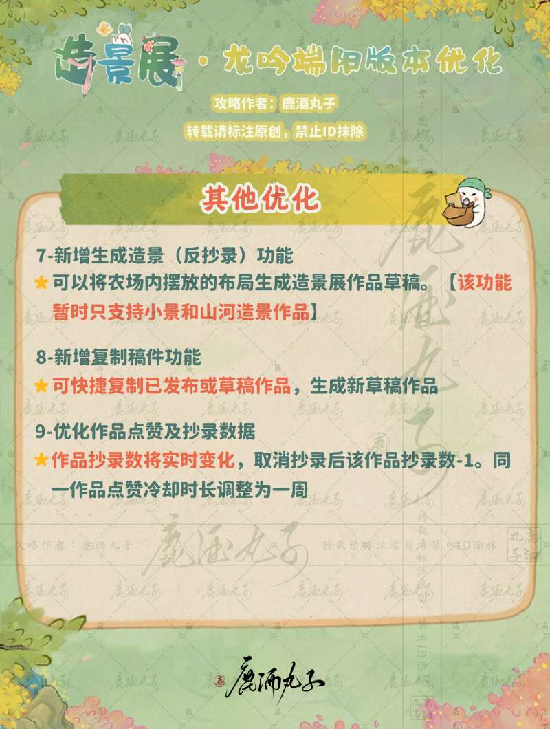 使玩家可抄录更多造景作品