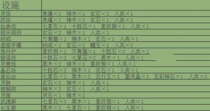 《堆叠修仙》设施合成表配方大全