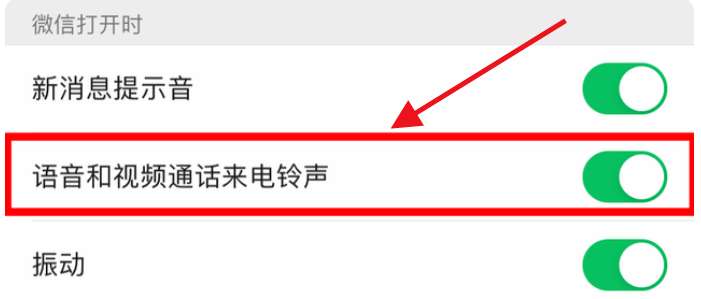 3、接着,将语音和视频通话来电铃声右侧开关开启。
