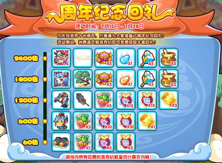 为庆祝洛克十二周年,万事通为大家准备了周年纪念回礼!活动期间,消费满足够洛克钻即可免费领取丰富回礼!
