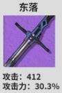 另一个412攻击力的武器,东落提供了30.3%的攻击力加成,相比纹秋更偏向于直接伤害提升,适合偏好稳定输出的玩家。