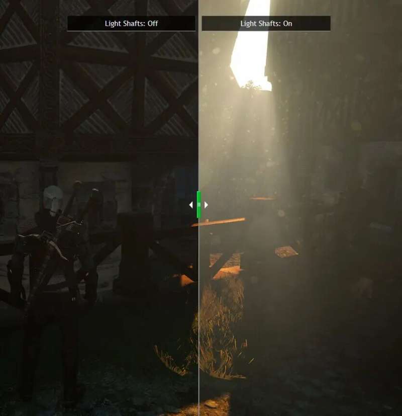 光束: 其他游戏中的上帝光选项,模拟光线穿过间隙的效果.和漫反射一起使用非常好看,而且对性能影响也非常小,建议打开.
