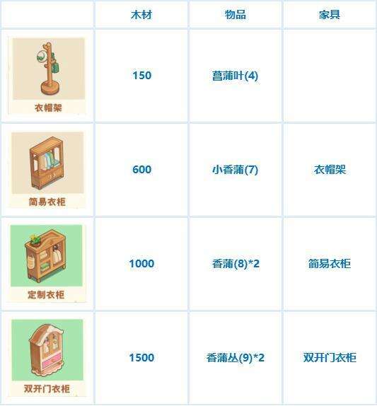 《小森灵》家具制作消耗一览