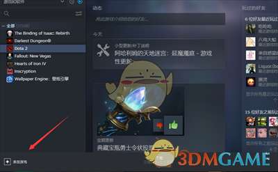 1、点击steam主页面的添加游戏,再点击激活steam游戏。