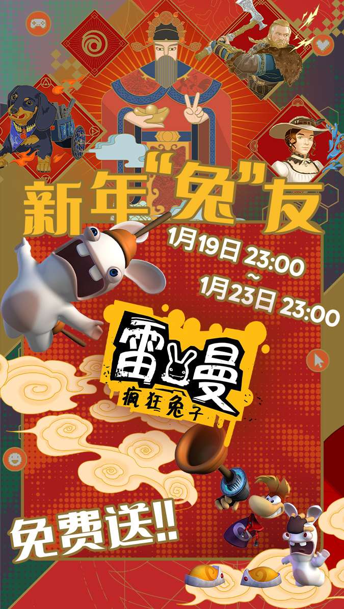 育碧官博:“兔年兔子兔相迎,雷曼疯兔携手祝你新春快乐《雷曼:疯狂兔子》限时免费送! 在这兔年佳节,打兔子,薅兔子,兔子吐字:Bwaaah!。”