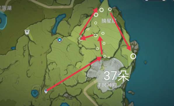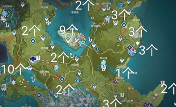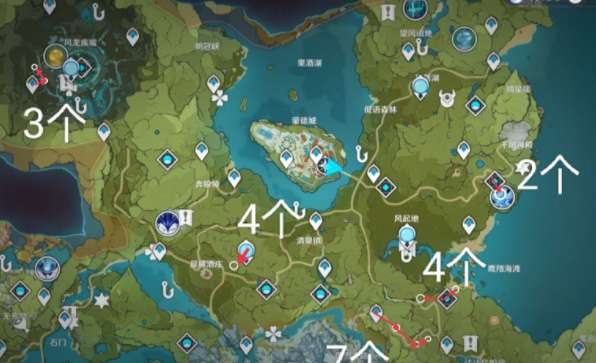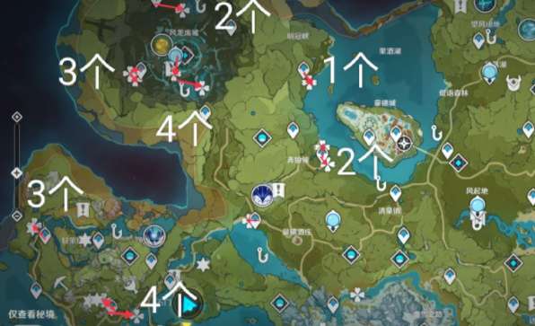 分散在蒙德各地,跟着路线有42个
