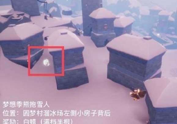 4、熊抱雪人:圆梦村溜冰场左侧房子后面,奖励是半根白蜡烛;