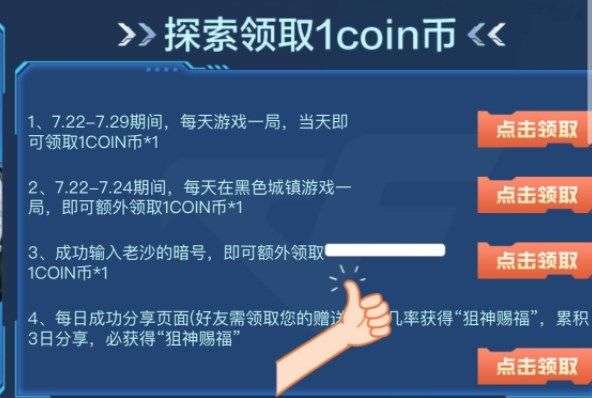 1、7.22-7.29期间,每天游戏一局,当天即可领取1COIN币*1