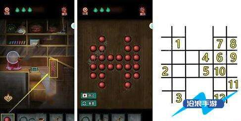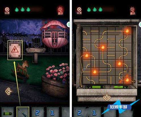 10、灯管安在走廊右上角的位置,然后结合保险箱的提示打开密码锁的门。