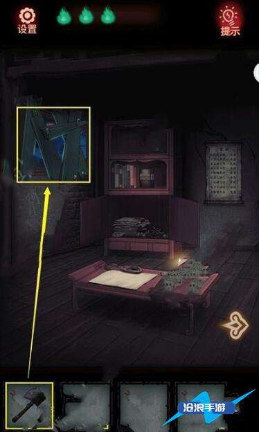 2、然后把灯笼挂在书上,查看木牌,得到线索。