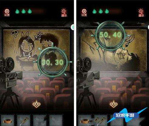 5、点击放映机切换荧幕画面,用透镜找到隐藏坐标。