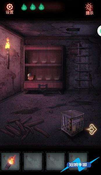 2、切换到右边的场景,用火把点燃墙上的蜡烛,拾取布偶。