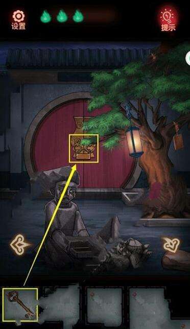 6、把白色棋子放进棋罐,根据木牌线索用白棋摆出伞的形状,得到钥匙。