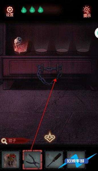 3、打开柜子上的箱子,得到螺丝刀和钳子,然后去拿酒缸上的【缺失的碎片】。
