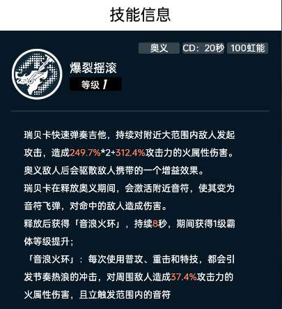 瑞贝卡的输出最大化需要一定的手法,注意随时利用共鸣攻击触发地面掉落的音符,使其变成音符飞弹,对单伤害更高。