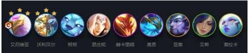 1、核心阵容:凤凰、狗熊、努努、猪妹、人马、奥恩、亚索、寒冰、索拉卡