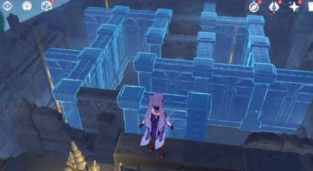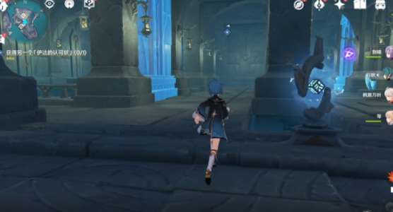 第一关迷宫简单的打发就是现在白夜状态下攻击两个三角机关各一下,然后切换成常夜状态下去使用水元素技能或者普攻触发水元素柱子机关,一共有四个。