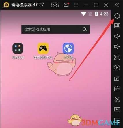 1、打开雷电模拟器后,点击右上角“设置”按钮(齿轮图标)进入,如图箭头所指位置