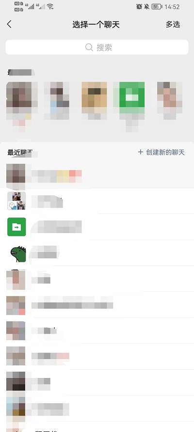 3、在转发界面,即可查看到最近聊天的好友,最上面的就是最频繁的。