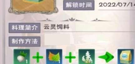 1.云灵饲料=仙灵大萝人+桂木叶+银色海带,使用这几种材料即可制作出云灵材料。