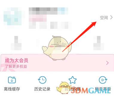2、打开b站,在我的界面点击头像右侧空间,进入个人主页。