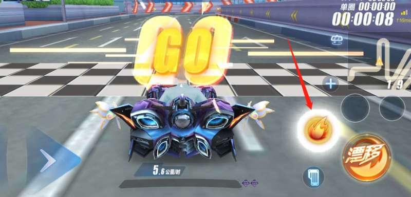 双侧起步就相当于是一个单侧起步再加一个侧身单喷,到这里肯定就有人问侧身单喷怎么出呢?其实侧身单喷就相当于是单侧起步。指法是一样的,就是按住漂移键,把按键从右划到左,点掉小喷就行了。