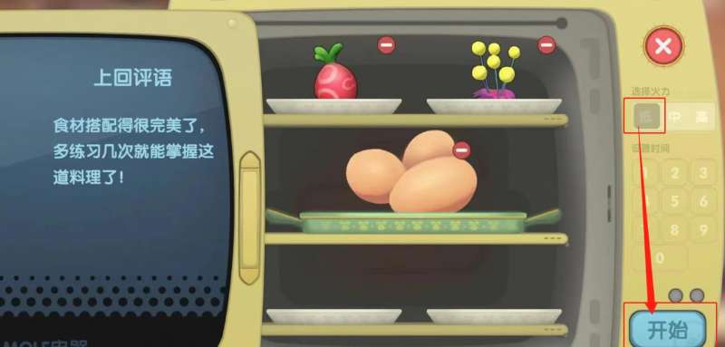 等材料全部集齐后,玩家就可以回家打开烤箱了,将全部材料都摆放进去。当烹饪时间结束后,玩家就能获得一碗摩摩蛋包饭。