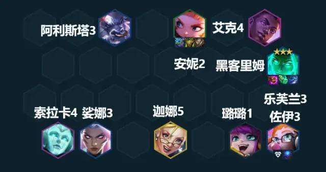 7人口我们没有拿到风女也没有关系,可以先将小D提高阵容整体质量再拉8去搜,搜到了直接替换掉拉克丝的位置就好。8-9人口我们可以补牛头和艾克,牛头提供一些控制效果并且可以和安妮组成2福牛提高安妮的坦度和阵容整体的容错率。艾克和牛头组成2秘术卫士羁绊提高全队魔抗的同时,还可以和我们的副C佐伊组成2淘气包羁绊,能让佐伊在拥有更强的生存能力。