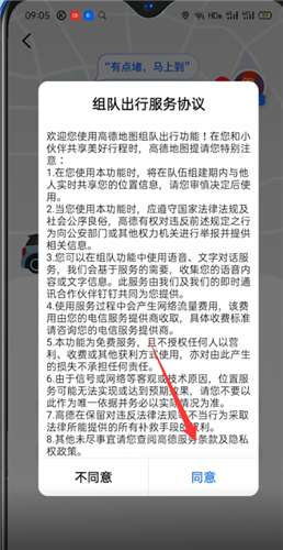 4、点击同意组队出行服务协议,