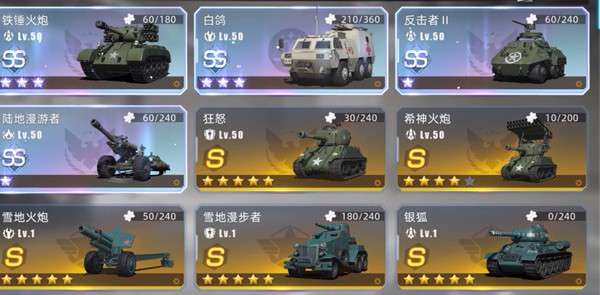 4:中期用银狐,帝国VI,美洲狮,复仇者,TOE,希神或帝国V,toe五星每天研发就好了,然后紫卡资源给银狐,橙卡给帝国VI,两个坦克王牌五,铁锤5星,进入下阶段;