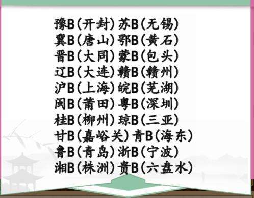 1、汉字找茬王完成牌照配对需要我们对各省市的地名有一定了解,看似很难,其实我们只需要熟悉每个省市有哪些城市就可以了。