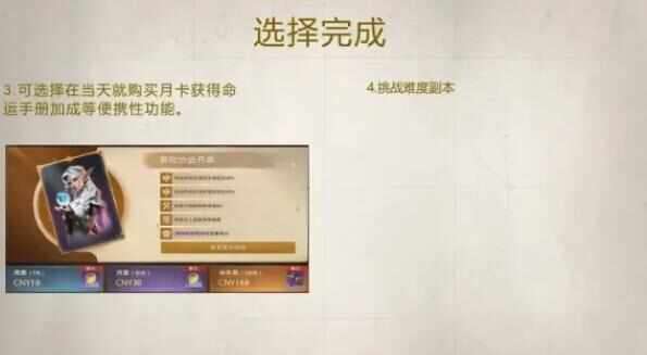 3.可选择在当天就购买月卡获得命运手册加成等便携性功能。