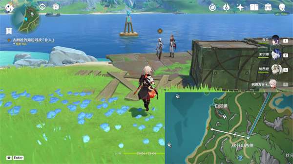 首先,传送至秋分山西侧锚点,然后前往海边找到NPC仆人进行对话。