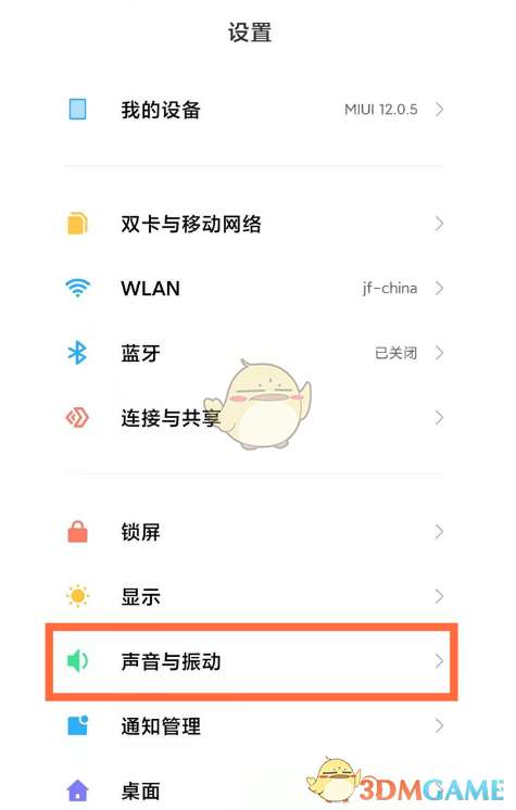 1、打开小米手机的【设置】,点击下方的【声音与振动】