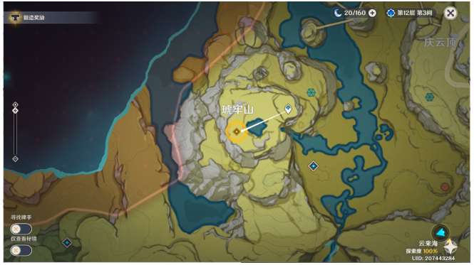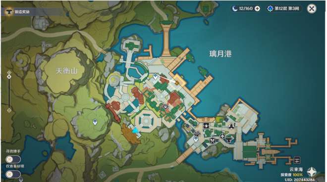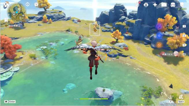 10、传送图中璃月港锚点,往地图的东北方,向下飞。