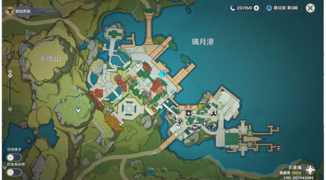 12、传送图中璃月港锚点,往地图的东方走。