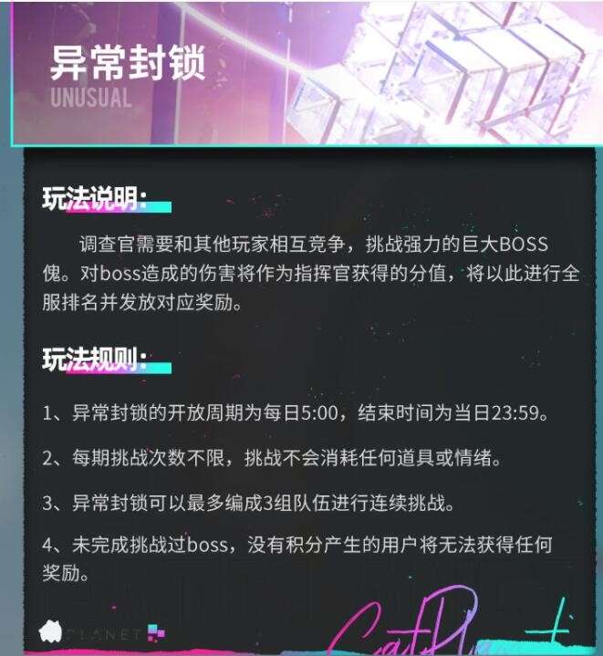 3、异常封锁可以最多编成3组队伍进行连续挑战。