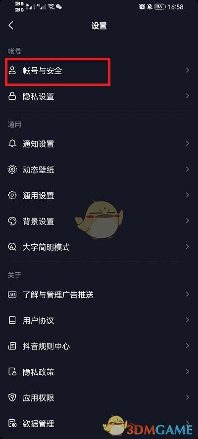 3、接着在该界面中,就可以看到最上方就会有一个【账号与安全】功能;